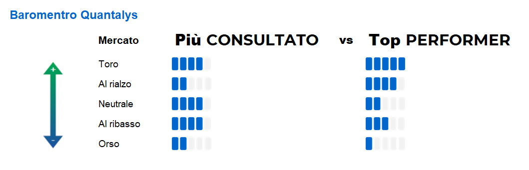 © 2025 Quantalys. Tutti i diritti riservati. Le informazioni fornite sono di proprietà di Quantalys Italia Harvest Group; possono non essere esaustive e non costituiscono raccomandazione o sollecitazione all’investimento. Quantalys Italia Harvest Group non si assume alcuna responsabilità per le eventuali conseguenze derivanti da decisioni assunte o iniziative intraprese sulla base delle informazioni riportate nel presente documento. Tutti i dati sono aggiornati alla data indicata e attribuiti a Quantalys Italia Harvest Group, salvo diversa indicazione.