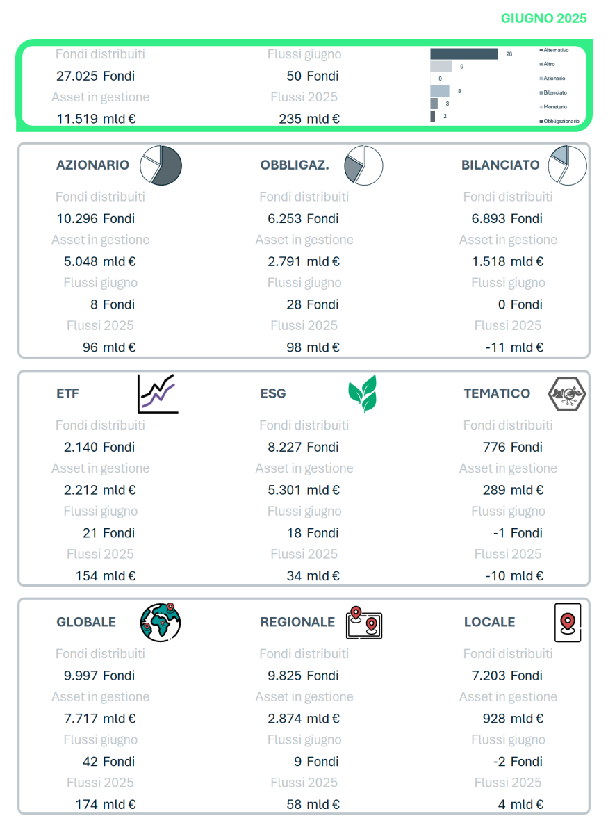 27.025 fondi distribuiti in Europa per un totale di 11.519 miliardi di Euro di masse gestite, scopri l'analisi mensile di luglio 2025 sull'andamento della Raccolta in Europa!