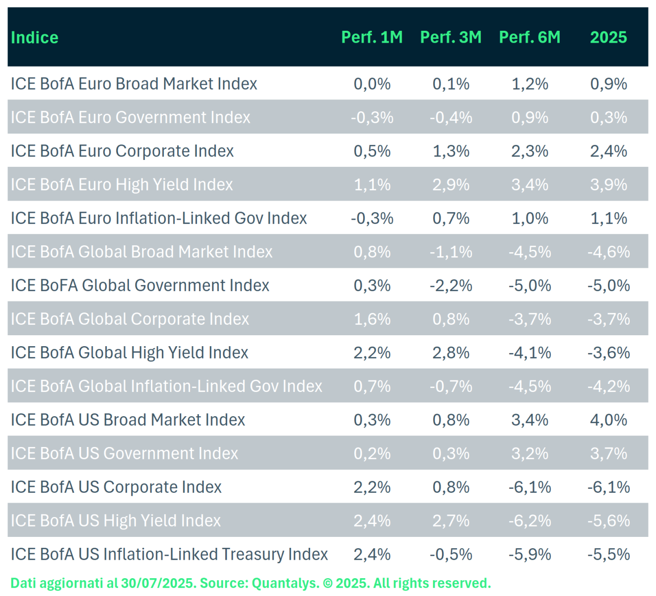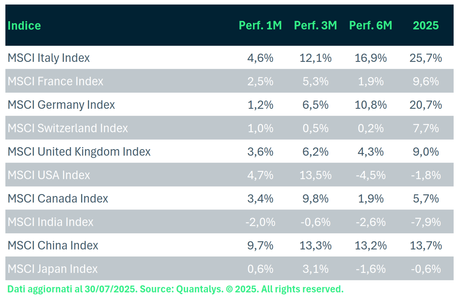 © 2025 Quantalys. Tutti i diritti riservati. Le informazioni fornite sono di proprietà di Quantalys Italia Harvest Group; possono non essere esaustive e non costituiscono raccomandazione o sollecitazione all’investimento. Quantalys Italia Harvest Group non si assume alcuna responsabilità per le eventuali conseguenze derivanti da decisioni assunte o iniziative intraprese sulla base delle informazioni riportate nel presente documento. Tutti i dati sono aggiornati alla data indicata e attribuiti a Quantalys Italia Harvest Group, salvo diversa indicazione.