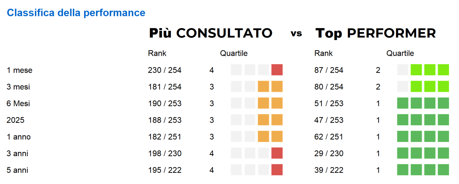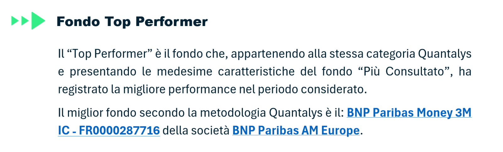 * La metodologia utilizzata per l'elaborazione dei dati è interna a Quantalys. I calcoli sono aggiornati al 30/06/2025. I calcoli sono effettuati da Quantalys e sono basati sui dati inviati giornalmente dalle società di gestione. Eventuali errori o omissioni sono di esclusiva responsabilità di Quantalys. Nonostante la massima cura prestata nella raccolta, nella verifica e nell’elaborazione dei dati provenienti da fonti ritenute affidabili, Quantalys non garantisce che i dati ricevuti siano accurati. Tutti i calcoli sono effettuati in euro.