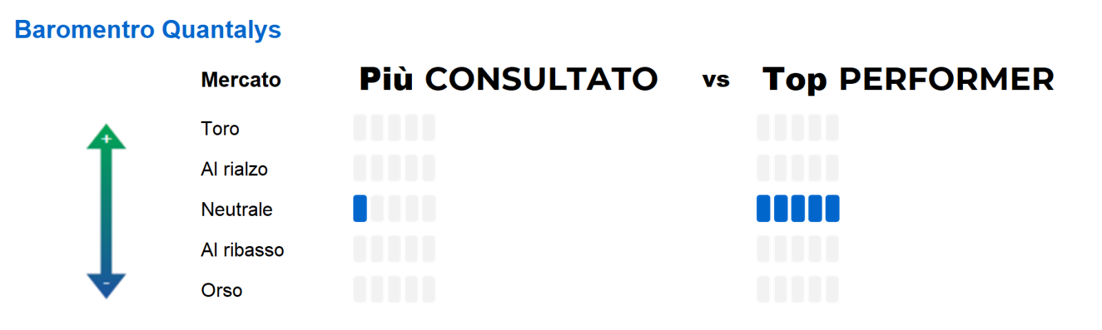 © 2025 Quantalys. Tutti i diritti riservati. Le informazioni fornite sono di proprietà di Quantalys Italia Harvest Group; possono non essere esaustive e non costituiscono raccomandazione o sollecitazione all’investimento. Quantalys Italia Harvest Group non si assume alcuna responsabilità per le eventuali conseguenze derivanti da decisioni assunte o iniziative intraprese sulla base delle informazioni riportate nel presente documento. Tutti i dati sono aggiornati alla data indicata e attribuiti a Quantalys Italia Harvest Group, salvo diversa indicazione.