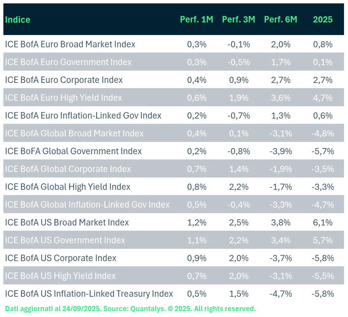 © 2025 Quantalys. Tutti i diritti riservati. Le informazioni fornite sono di proprietà di Quantalys Italia Harvest Group; possono non essere esaustive e non costituiscono raccomandazione o sollecitazione all’investimento. Quantalys Italia Harvest Group non si assume alcuna responsabilità per le eventuali conseguenze derivanti da decisioni assunte o iniziative intraprese sulla base delle informazioni riportate nel presente documento. Tutti i dati sono aggiornati alla data indicata e attribuiti a Quantalys Italia Harvest Group, salvo diversa indicazione.