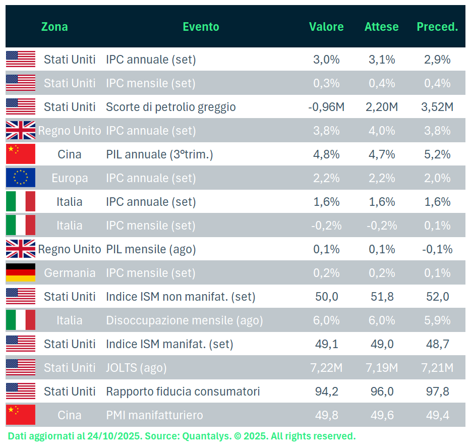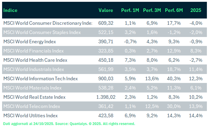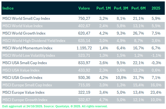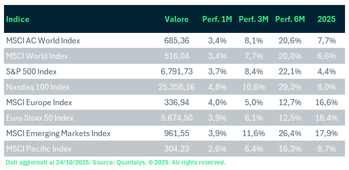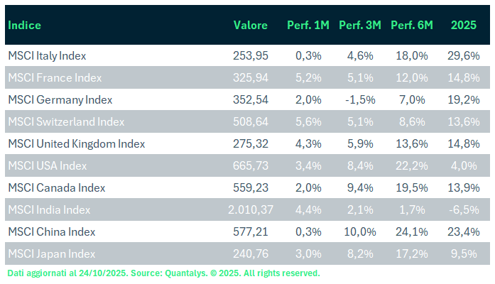 © 2025 Quantalys. Tutti i diritti riservati. Le informazioni fornite sono di proprietà di Quantalys Italia Harvest Group; possono non essere esaustive e non costituiscono raccomandazione o sollecitazione all’investimento. Quantalys Italia Harvest Group non si assume alcuna responsabilità per le eventuali conseguenze derivanti da decisioni assunte o iniziative intraprese sulla base delle informazioni riportate nel presente documento. Tutti i dati sono aggiornati alla data indicata e attribuiti a Quantalys Italia Harvest Group, salvo diversa indicazione.