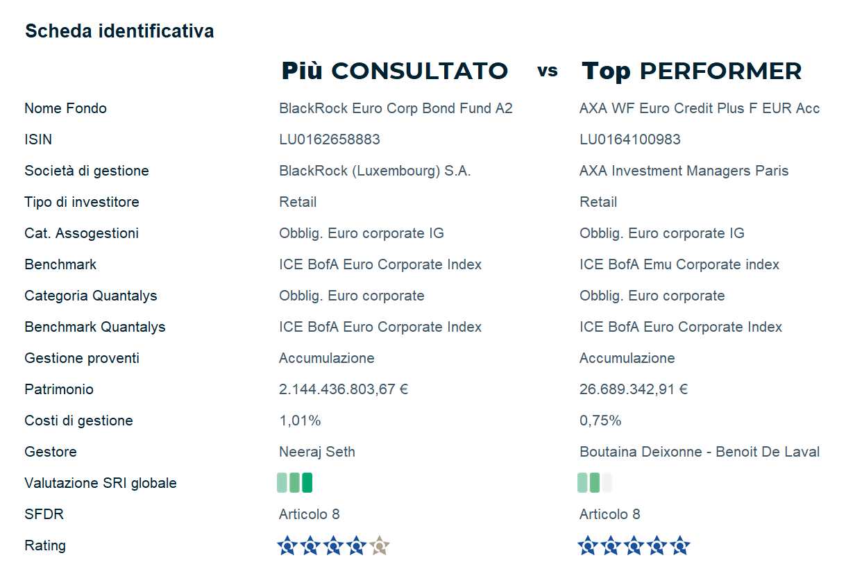 Di seguito è possibile visualizzare il confronto tra le caratteristiche di questi fondi.